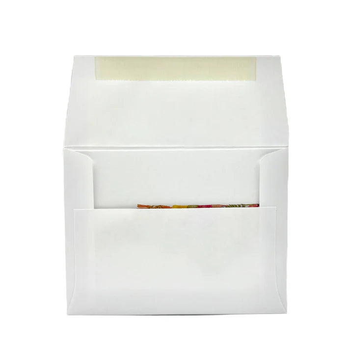 Set of 6 cards with envelopes. Sealed in reclosable crystal clear sleeve. Folded size 4.25” x 5.5”. The notecards are printed in full color using a high resolution image of the original pressed flower state artwork.